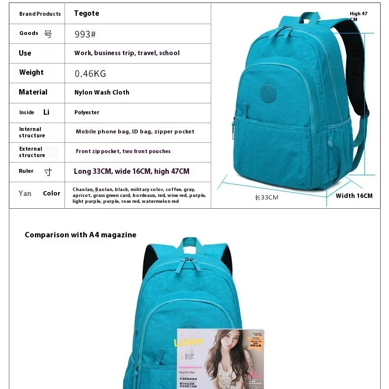 TEGAOTE nov modni šolski nahrbtnik za najstnike: Univerzalen nahrbtnik iz trpežnega najlona, primeren za deklice, dečke in ženske. Odličen za šolo, potovanja ali vsakodnevno uporabo. Ima prostor za prenosnik in je primeren za različne priložnosti