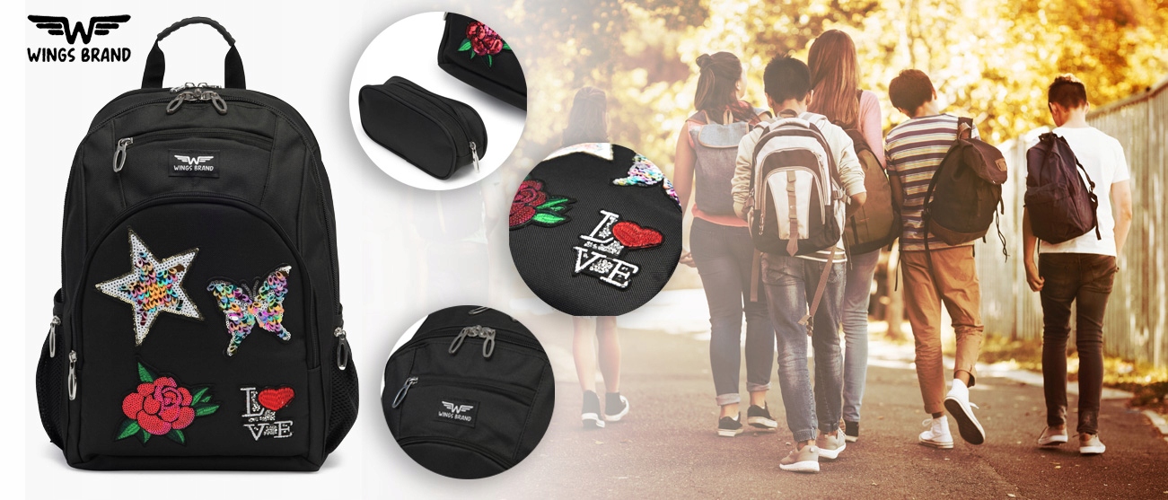 WINGS YOUTH šolski nahrbtnik z ujemajočo peresnico – komplet: Velik in prostoren šolski nahrbtnik v kompletu s peresnico. Idealen za osnovnošolce in najstnike. Praktičen za šolo in vsakodnevno uporabo
